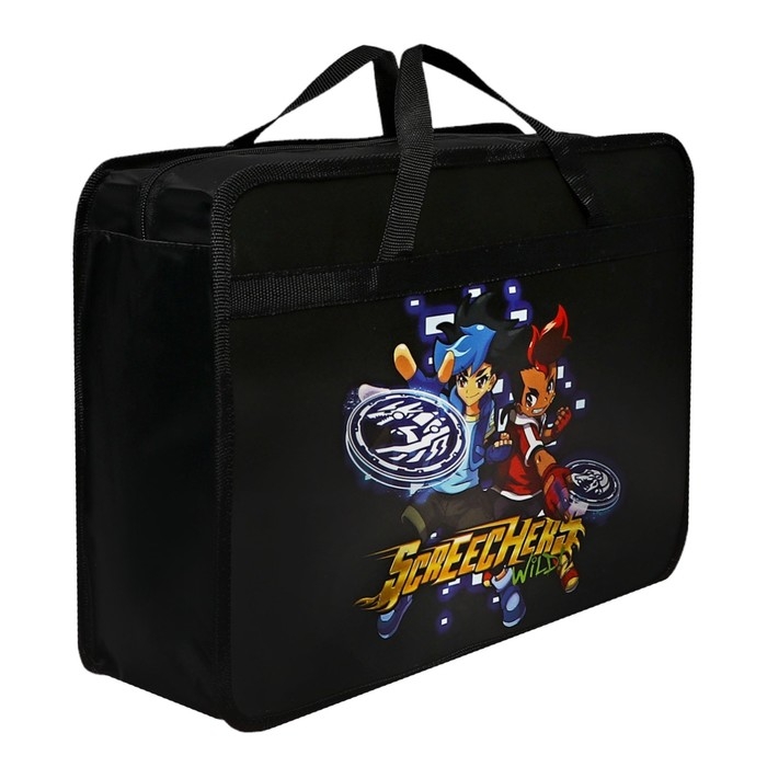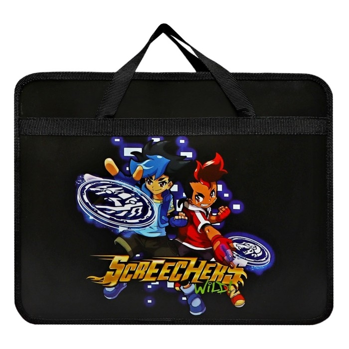 Папка с ручками А4, 330 х 260 х 120 мм, пластиковая, ручки-текстиль, "Дикие Скричеры"
