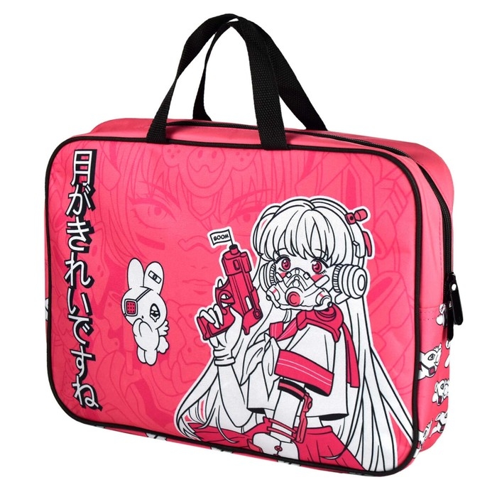 Папка с ручками текстильная А4, 345 х 260 х 70 мм, Феникс "Розовая девушка"