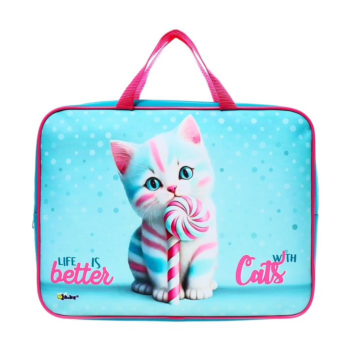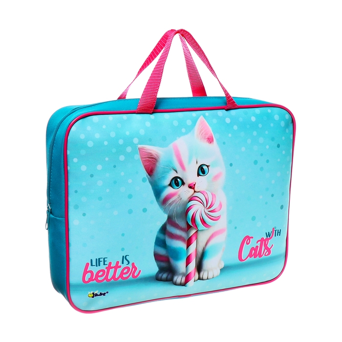 Папка с ручками текстильная А4, 350 х 265 x 75 мм, ПМД 4-20 "Котик Карамелька"