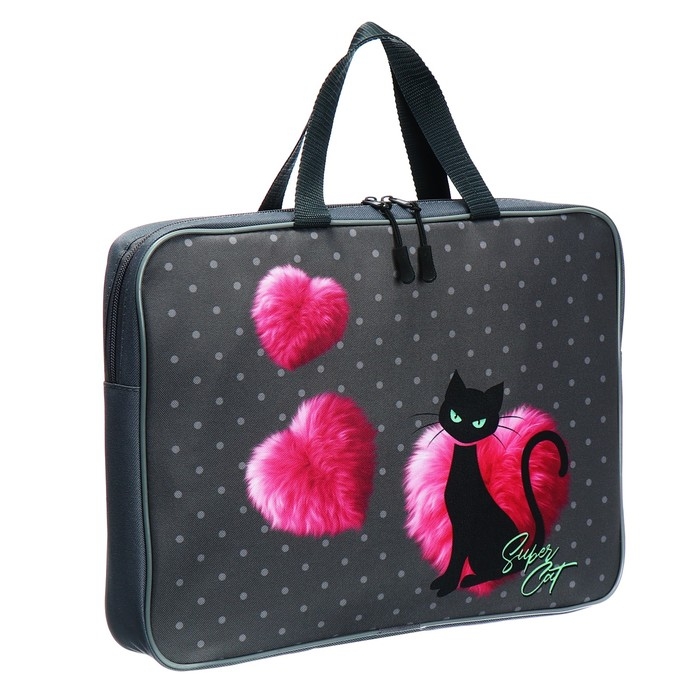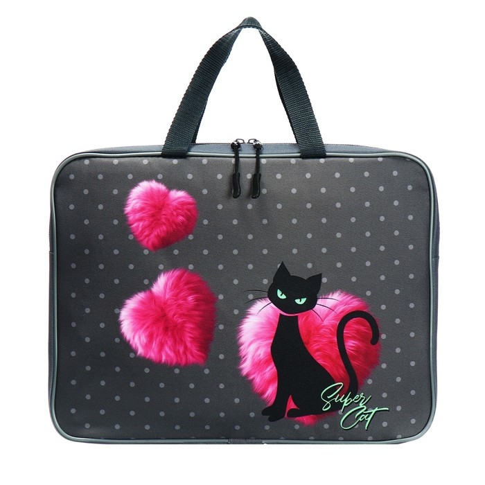Папка с ручками текстильная А4, 370 х 280 х 60 мм, Stavia "Чёрная кошка" розовый