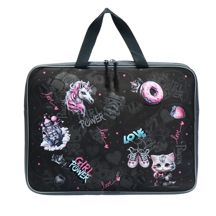Удобная вместительная папка для бережного хранения и переноса тетрадей, альбомов, материалов для уроков труда и творчества. Легкая и прочная, размер 370 х 28 х 60 см, вес 0,190 кг, рассчитана на формат А4. Выполнена из качественных материалов с водоотталкивающей пропиткой, по краям имеет плотную окантовку для поддержания формы, застегивается на молнию. Внутри есть большой карман. Удобные ручки из тесьмы для легкой переноски. Папку украшает авторский дизайн, соответствующий последним трендам.