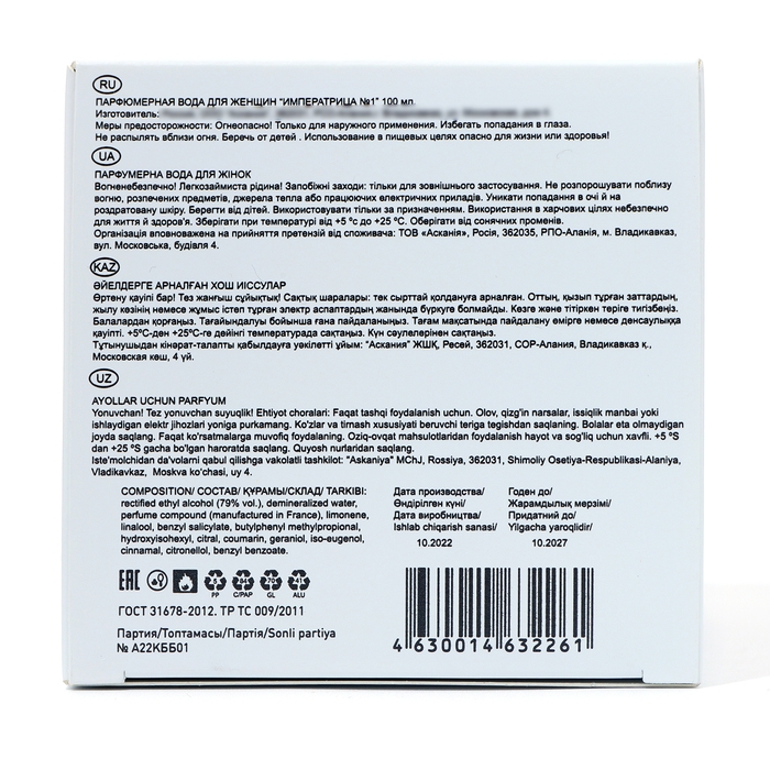 Парфюмерная вода женская Barry Berry IMPERATRICE №1, 100 мл