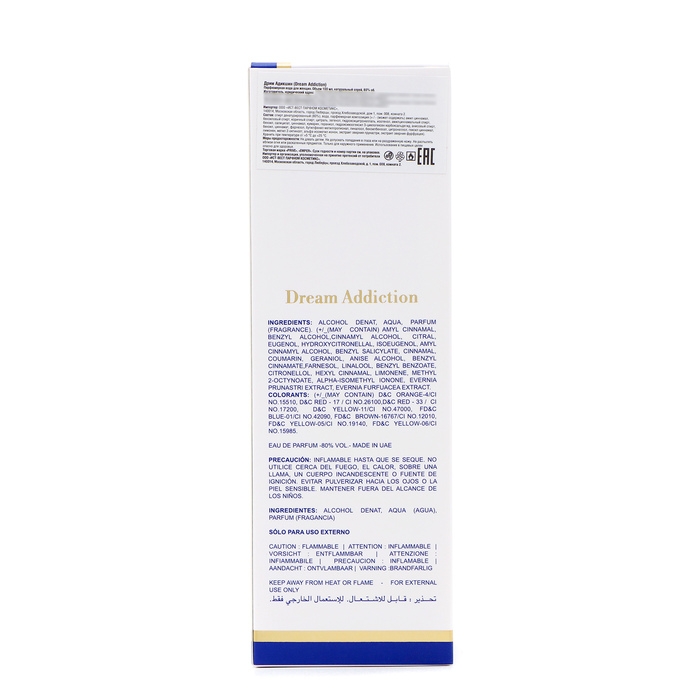 DREAM ADDICTION -аромат женственности в самой высшей ее точке. Независимость и самодостаточность - вот два главных ингредиента этого парфюма. Роскошный букет отправляет в тайное путешествие по ночному лесу, полному ярких запахов и магических тайн. В основу композиции аромата встали цитрусовые и цветочные букеты. В первую очередь нужно отметить нотки грейпфрута, апельсина, арбуза и сандалового масла. Аромат отличается дерзостью и раскованностью. Мускус, бергамот и лотос придает композиции бодрящие свойства, при этом фруктовая коллекция набора отвечает за мягкость запаха. Свободный, чувственный, мягкий, теплый, роскошный характер аромата полностью повторяет внутренний мир истинной модницы.