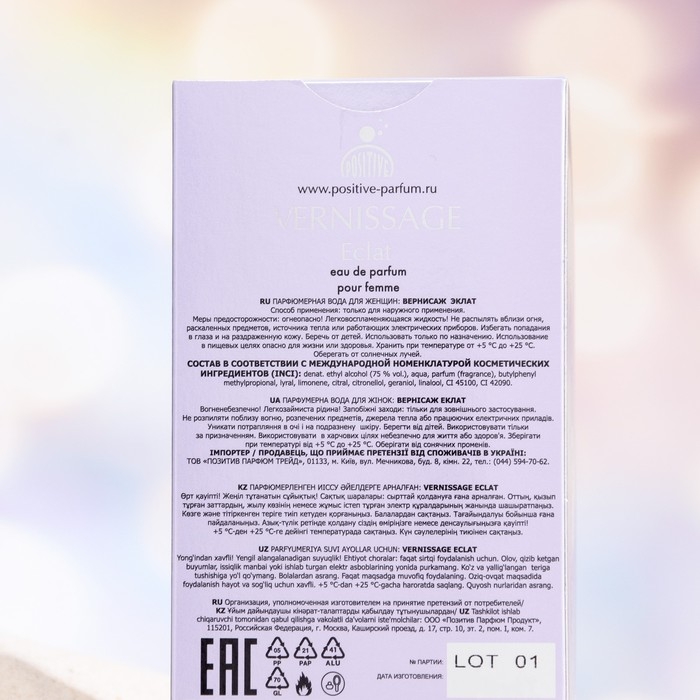 Парфюмерная вода женская VERNISSAGE ECLAT, 50 мл