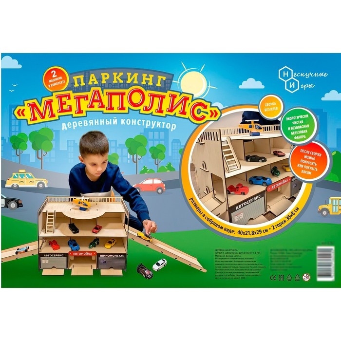 Парковка из дерева «Паркинг. Мегаполис» в наборе 2 машинки