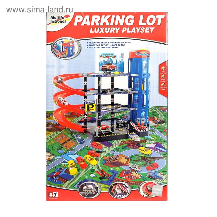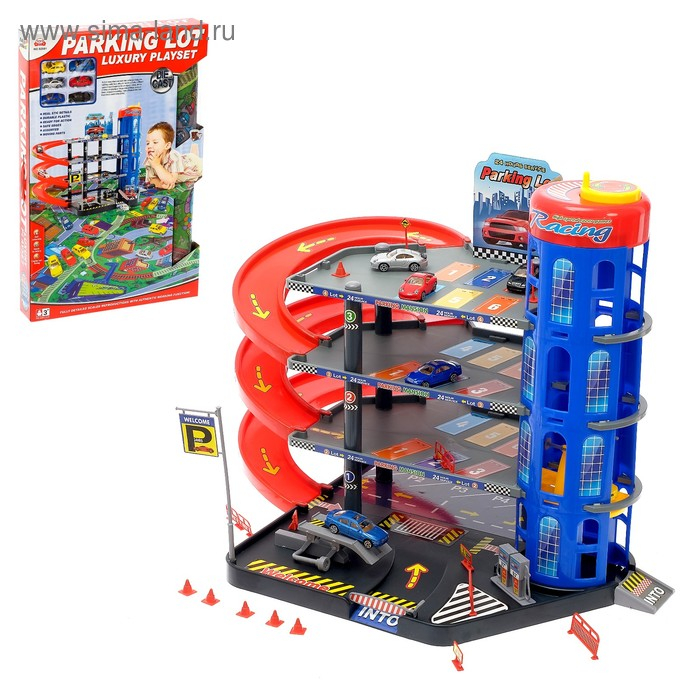 Парковка «Мега паркинг», 6 металлических машин + коврик