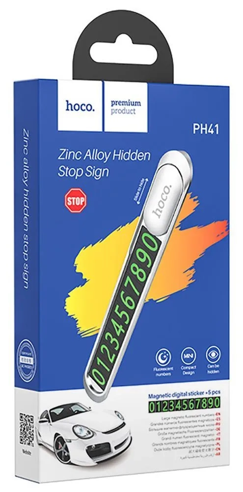 Hoco PH41 Promise metal hidden stop sign - миниатюрная парковочная табличка с номером телефона для автомобиля. Изготовлена из прочного цинкового сплава