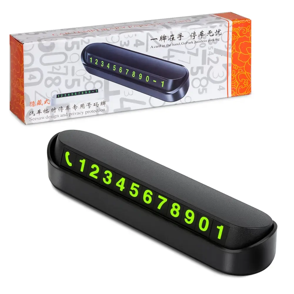 Удобный и красивый аксессуар для размещения контактного номера в автомобиле. Отсек с цифрами открывается/закрывается нажатием на заднюю/переднюю часть корпуса верхнего отсека автовизитки. Благодаря двухстороннему скотчу надежно фиксируется на панели автомобиля и не мешает обзору дороги при поездке. Материал: ABS пластик Люминесцентное покрытие - да Размер товара - 123х34х24 мм Вес товара - 23 г. Комплектация: Автовизитка -  1 шт Клеящий элемент - 2 шт Количество рядов сменных цифр (от 0 до 9) - 4шт.