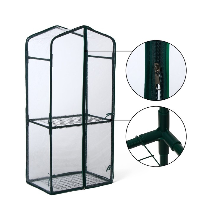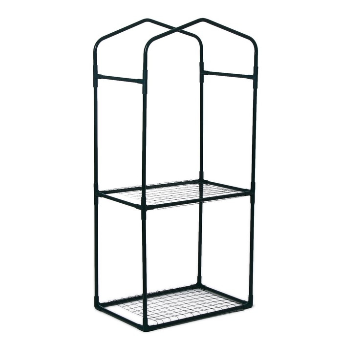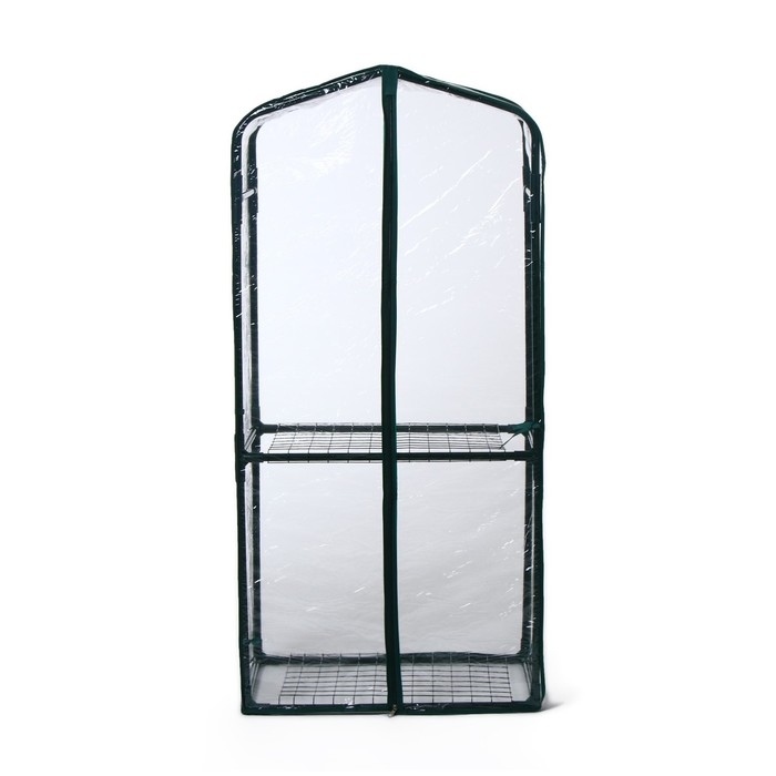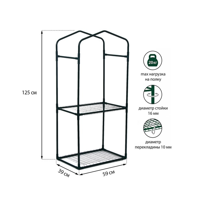 Парник-стеллаж, 2 полки (сетка), 125 × 59 × 39 см, металлический каркас d = 16 мм, чехол плёнка 80 мкм