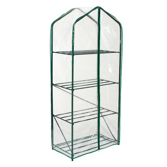 Парник-стеллаж, 3 полки, 80 × 24 × 46 см, металлический каркас d = 12 мм, чехол плёнка 80 мкм, Greengo