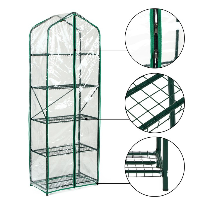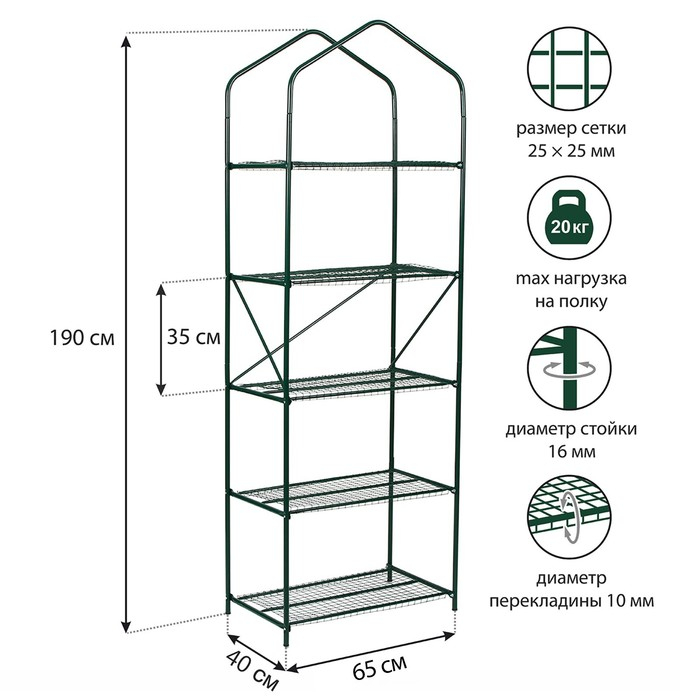 Парник-стеллаж, 5 полок, 190 × 65 × 40 см, металлический каркас d = 16 мм, чехол плёнка 100 мкм