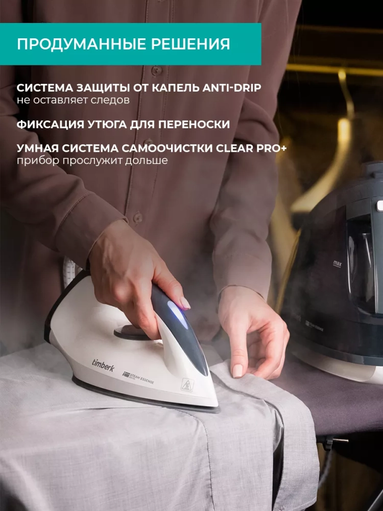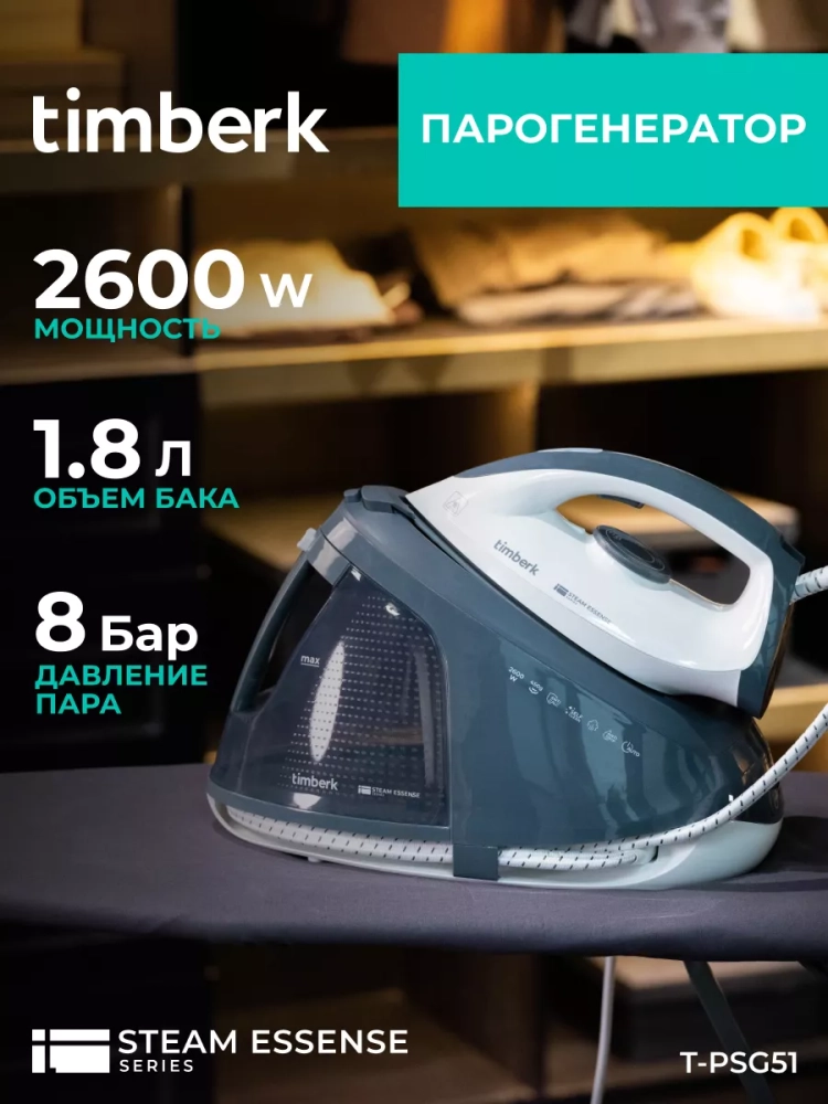 Парогенератор Timberk серии Steam Essense - отличное решение для дома. Благодаря мощности в 2600 Вт и давлению пара 8 бар, устройство быстро нагревается и выдаёт плотное облако пара. Керамическая подошва утюга, ЭКО режим и защита от случайных капель обеспечивают быстрое и бережное глажение. Умная система самоочистки и функция автоотключения делают использование прибора комфортным и безопасным.