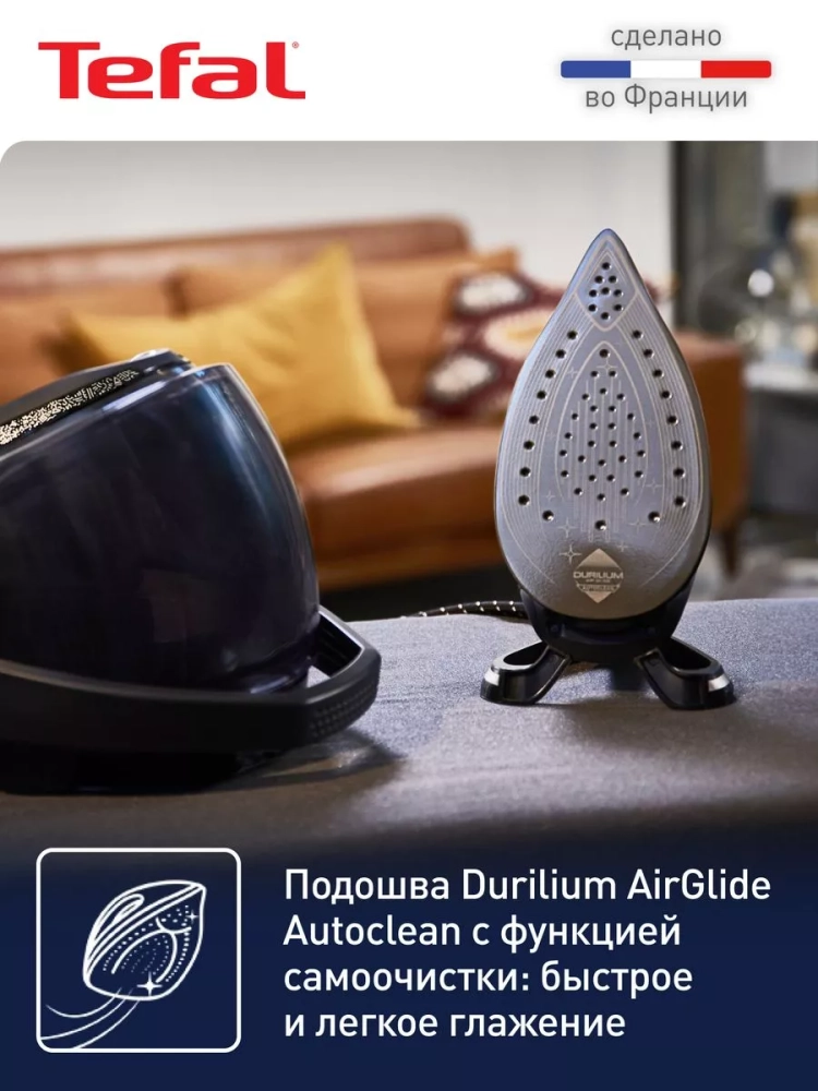 Подошва Durilium AirGlide с покрытием Autoclean обеспечивает безупречное скольжение и равномерное распределение пара, а система блокировки гарантирует безопасное хранение ручного парогенератора. А тихая работа, мгновенное разглаживание и интуитивное управление позволит в полной мере насладиться работой паровой станции.