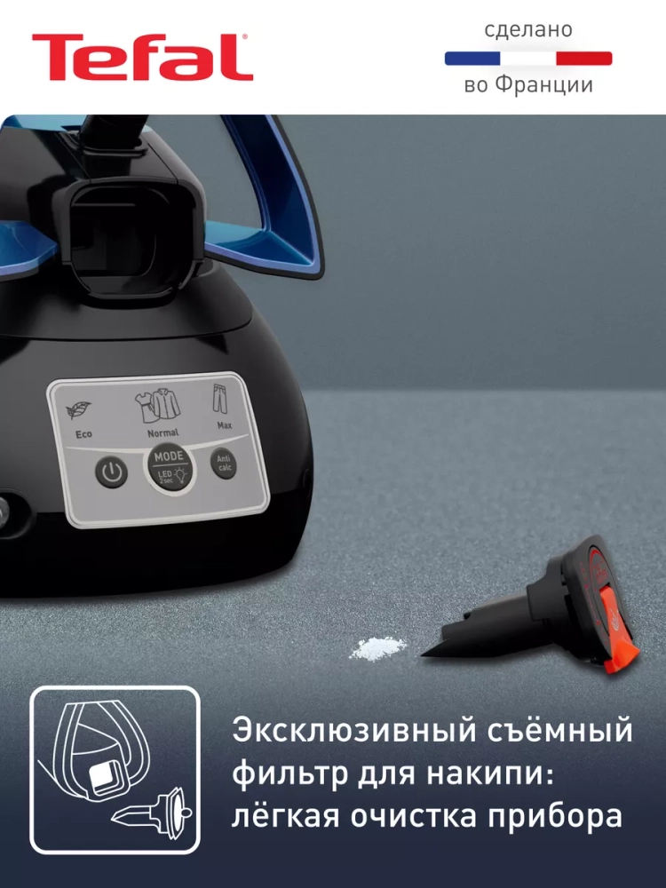 Кроме того, бытовой парогенератор оснащен большим съемным резервуаром для воды 1,8 л, что гарантирует долгое время работы, а при необходимости его можно дополнить прямо во время использования утюга с паром. Инновационный съемный коллектор для накипи обеспечит простой уход за одеждой и бельем, а также продлит срок службы паровой станции Тефаль. Устройство разработано и произведено во Франции в соответствии с высочайшими стандартами качества, мастерства и экспертизы, что гарантирует надежность, долговечность и превосходные результаты в каждом использовании.