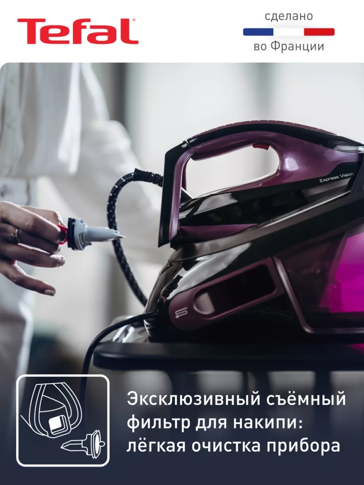Кроме того, бытовой парогенератор оснащен большим съемным резервуаром для воды 1,8 л, что гарантирует долгое время работы, а при необходимости его можно дополнить прямо во время использования утюга с паром. Инновационный съемный коллектор для накипи обеспечит простой уход и продлит срок службы паровой станции Тефаль. Устройство разработано и произведено во Франции в соответствии с высочайшими стандартами качества, мастерства и экспертизы, что гарантирует надежность, долговечность и превосходные результаты в каждом использовании.