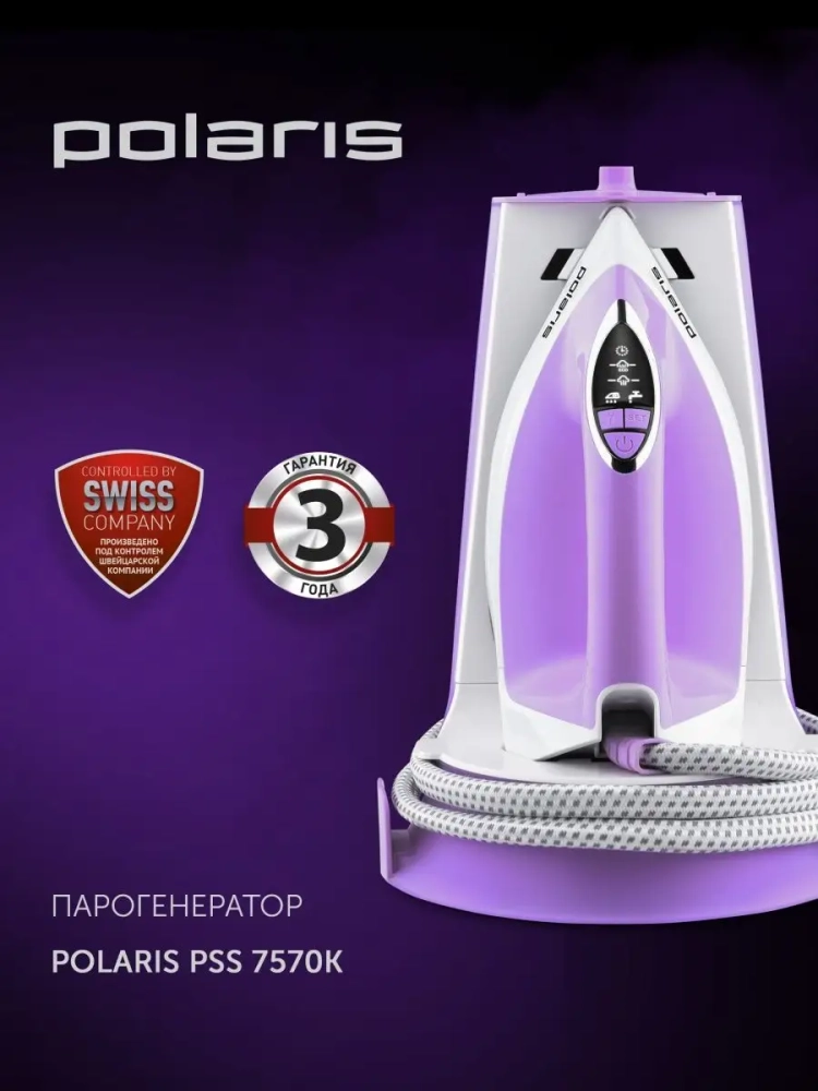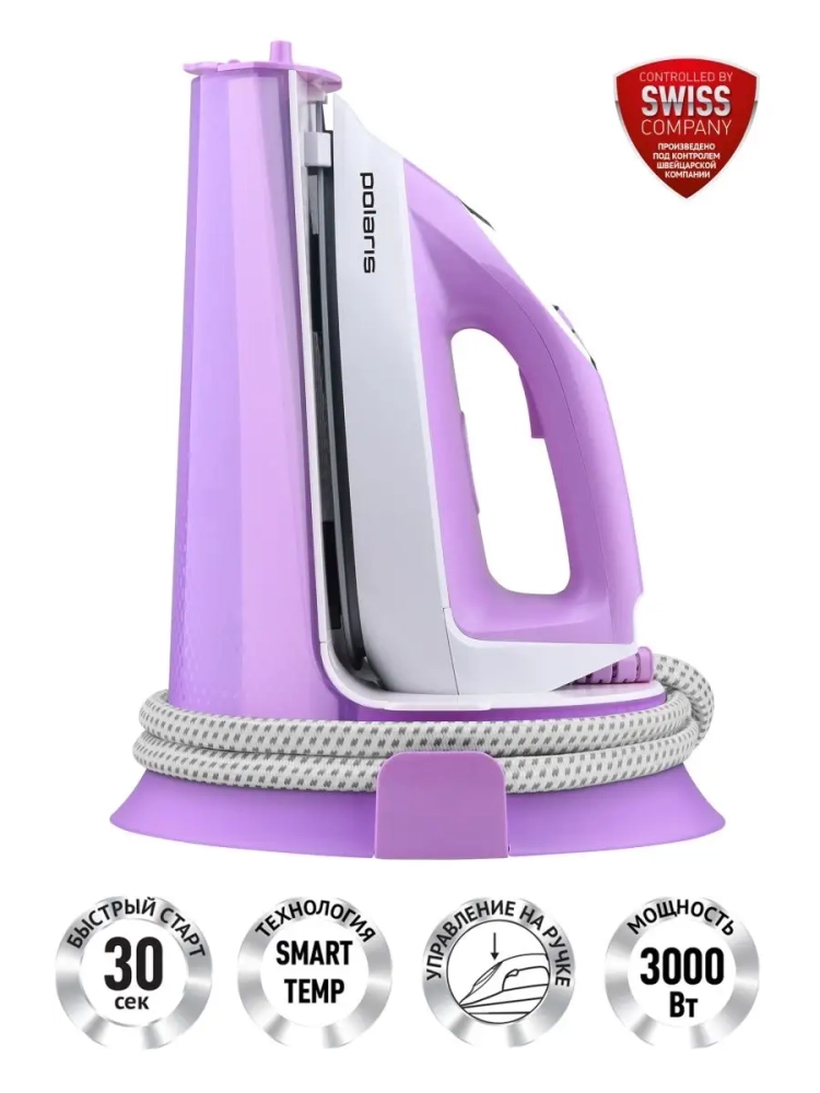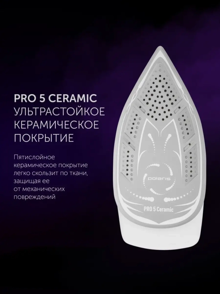 Поддержание оптимальной температуры подошвы "SMART TEMP". Время подготовки к работе: 30 сек. Электронное управление на ручке. Компактный размер - идеально для хранения. Давление пара до 7 Бар. Керамическое покрытие подошвы - PRO 5 Ceramic. Автоотключение. Мощность постоянного пара до 120 г/мин. Режимы работы: сухое глажение; постоянный пар до 120г/мин; "паровой удар" до 400 г/мин; ECO режим - постоянный пар до 60 г/мин; вертикальное отпаривание. Резервуар для воды объемом 1.5 л. Мощность: 3000 Вт.