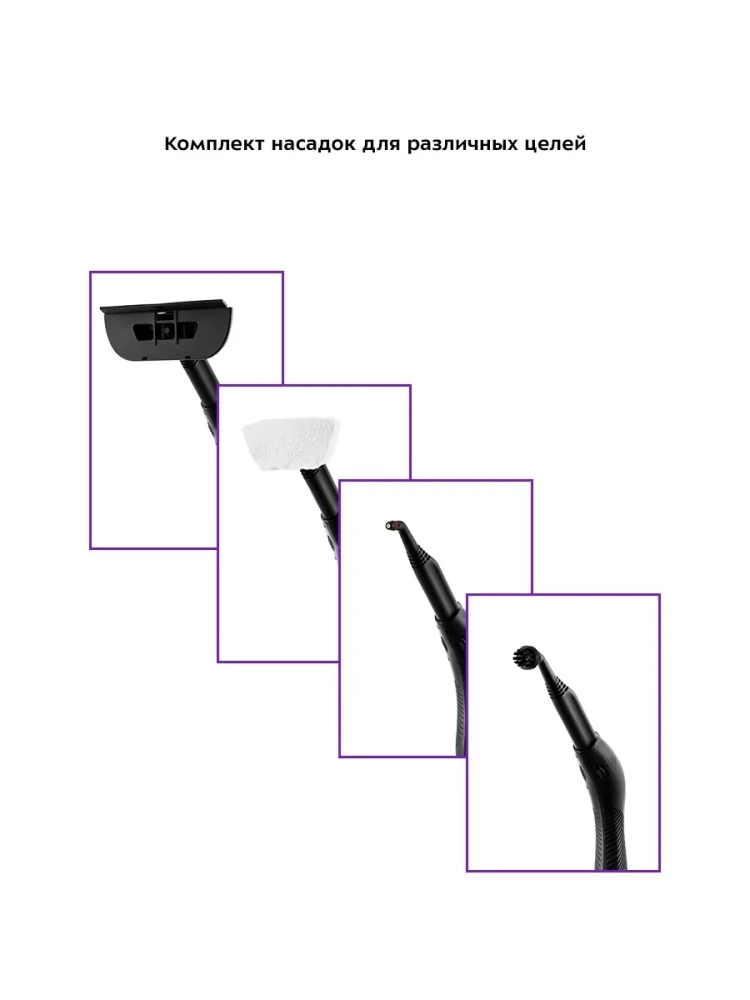 Пароочиститель Kitfort КТ-9102 - многофункциональный аппарат, способный заменить паровую швабру, дезинфектор, стеклоочиститель и отпариватель для тканей. Компактный портативный пароочиститель КТ-9102 предназначен для домашнего использования, а также использования вне дома, например в офисах, магазинах, гостиницах и отелях, для уборки интерьеров, полов и поверхностей, находящихся как внутри, так и вне помещений. Горячий пар под давлением может удалять грязь, жир и известковые отложения с различных поверхностей, убивать патогенные микроорганизмы, бактерии и пылевых клещей, которые могут вызывать аллергические реакции и астму. Пар быстро испаряется, не оставляя следов влаги на поверхности. Пароочиститель очищает поверхности от пятен при помощи горячего пара, однако не все пятна могут быть удалены таким способом. В случаях серьезного загрязнения используйте вспомогательные насадки (ворсовую щетку и др.), а также чистящие средства, которые надо наносить на загрязнения.