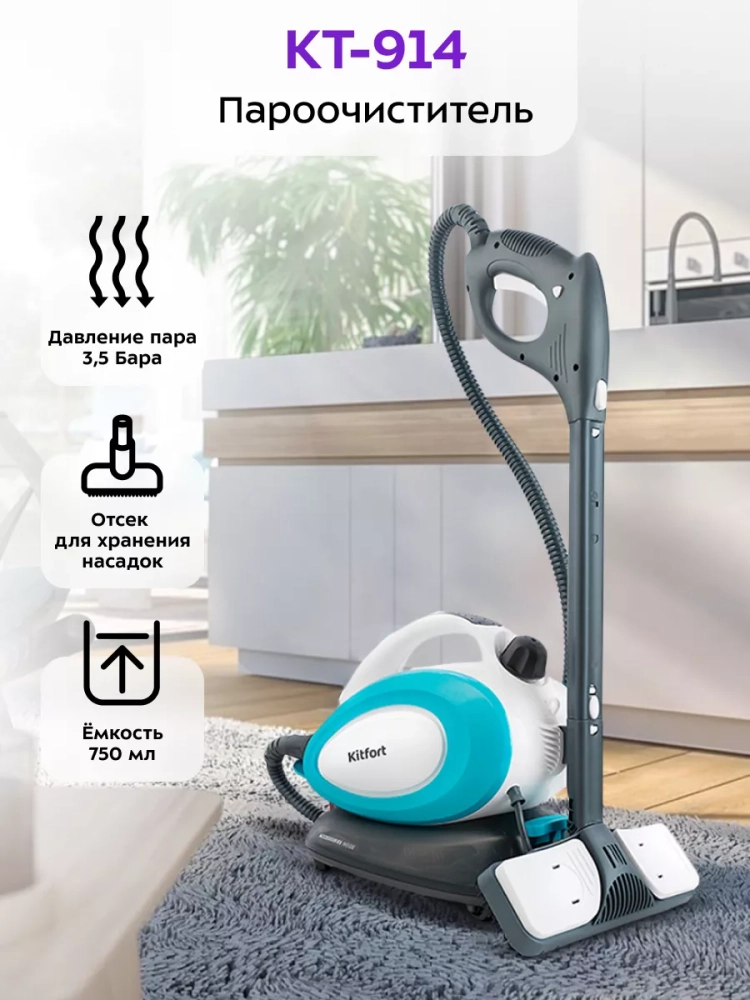 Пароочиститель Kitfort КТ-914 - многофункциональный аппарат, способный заменить паровую швабру, дезинфектор, стеклоочиститель и отпариватель для тканей. Используя силу горячего пара, пароочиститель великолепно очищает поверхности и обеспечивает деликатную глажку вещей. Горячий пар под давлением может удалять грязь, жир и известковые отложения с различных поверхностей, убивать патогенные микроорганизмы, бактерии и домашних клещей, которые могут вызывать аллергические реакции и астму.