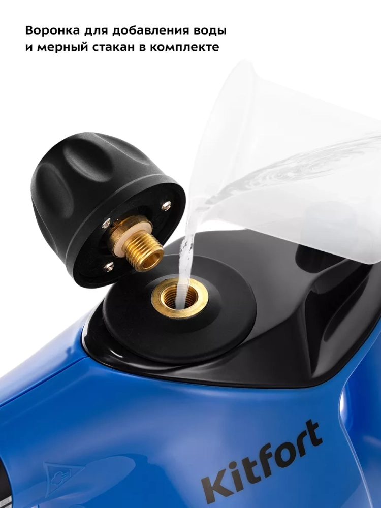 В устройство удобно наливать воду благодаря наличию воронки и мерного стакана.