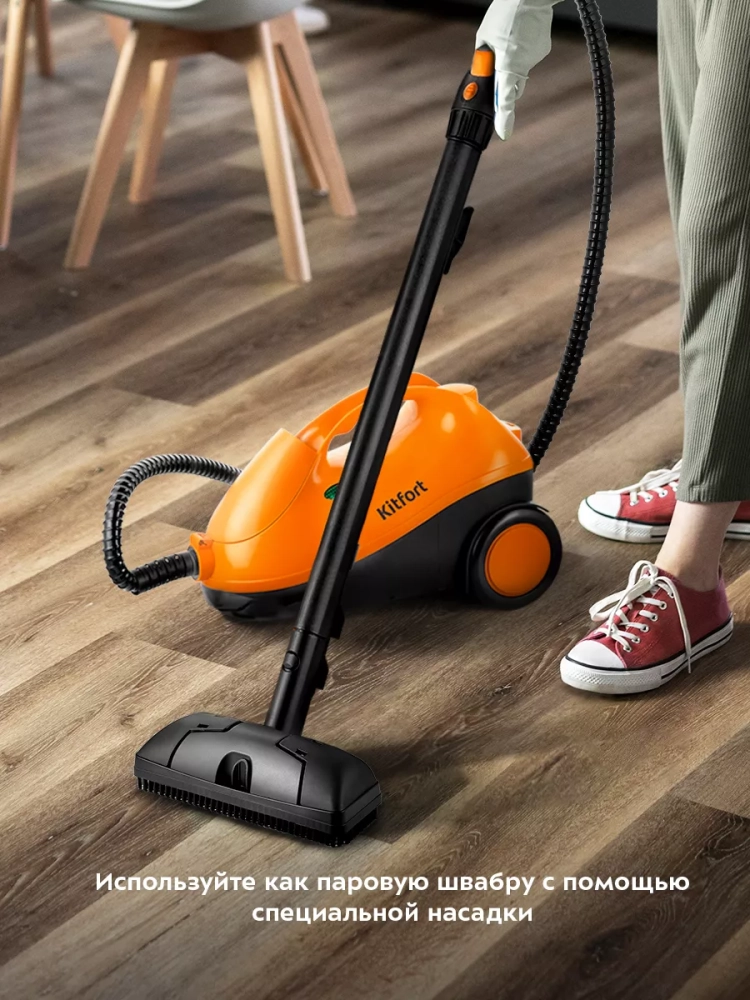 Пароочиститель Китфорт КТ-9141 предназначен для уборки интерьеров, полов и поверхностей, находящихся как внутри, так и вне помещений, а также для отпаривания тканей.