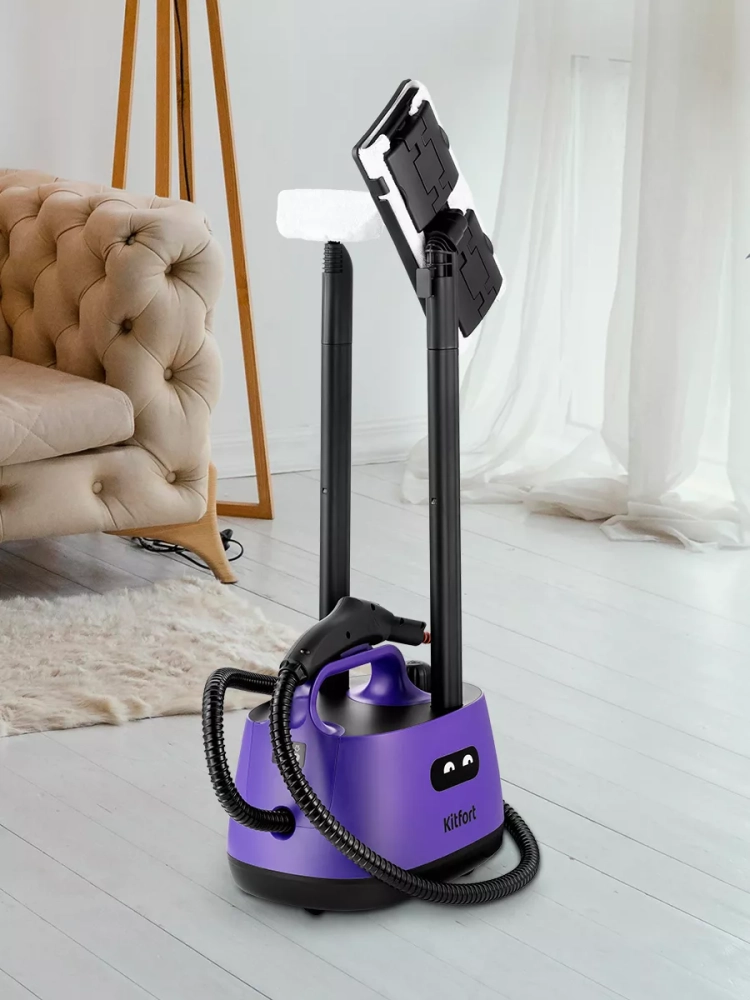Пароочиститель Китфорт КТ-9147 предназначен для уборки интерьеров, полов и поверхностей, выдерживающих влагу и высокую температуру, а также для отпаривания тканей.