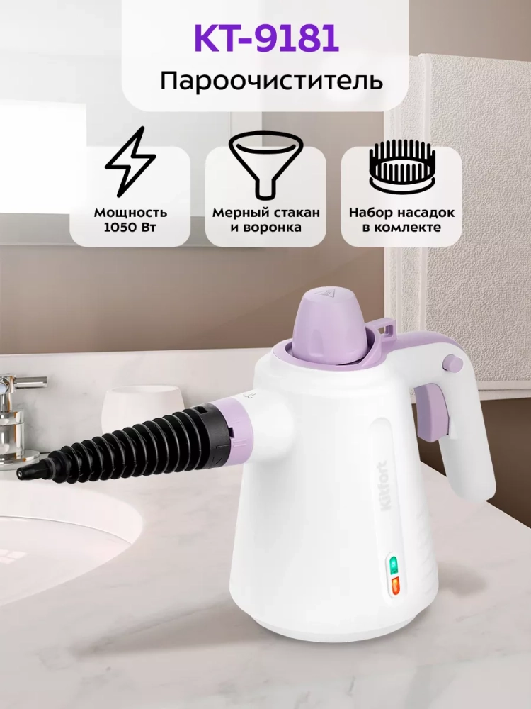 Пароочиститель для дома, для уборки КТ-9181 - 1050 Вт