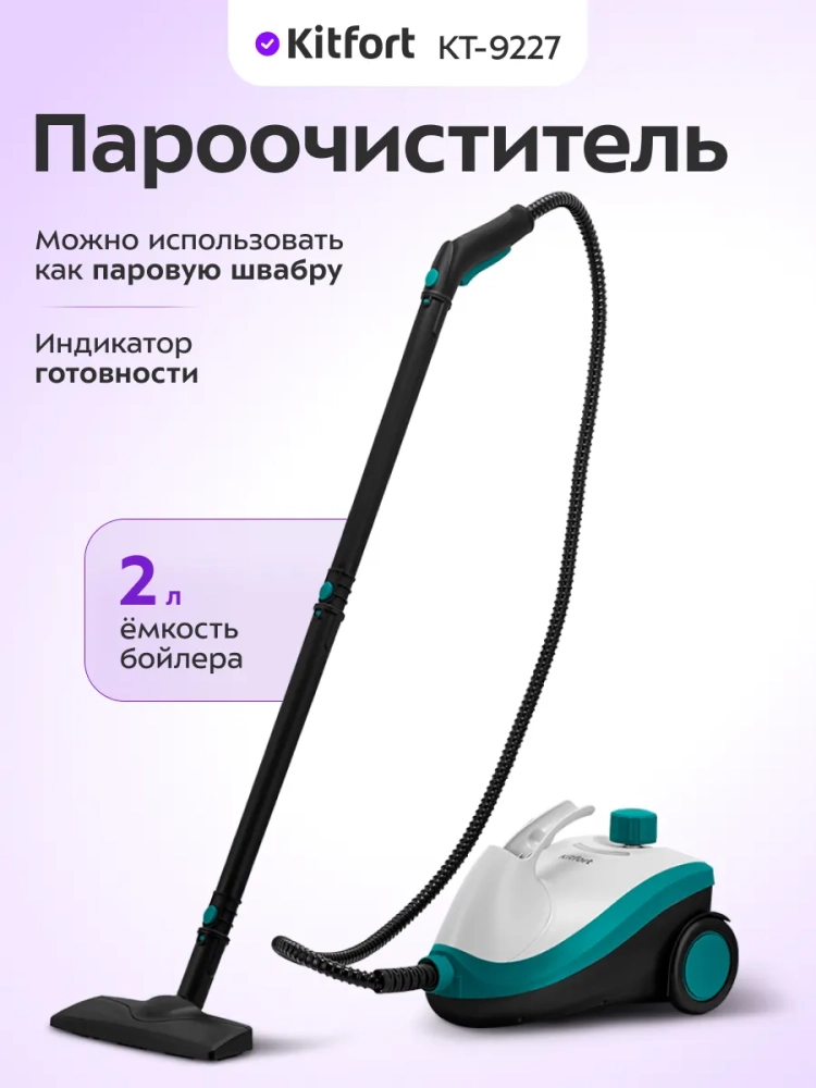 Пароочиститель Kitfort КТ-9227 предназначен для уборки интерьеров и поверхностей, выдерживающих влагу и высокую температуру, а также для отпаривания тканей.