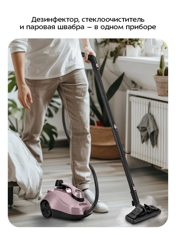 Пароочиститель Kitfort КТ-9322 предназначен для уборки интерьеров, полов и поверхностей, находящихся как внутри, так и вне помещений, а также для отпаривания тканей.