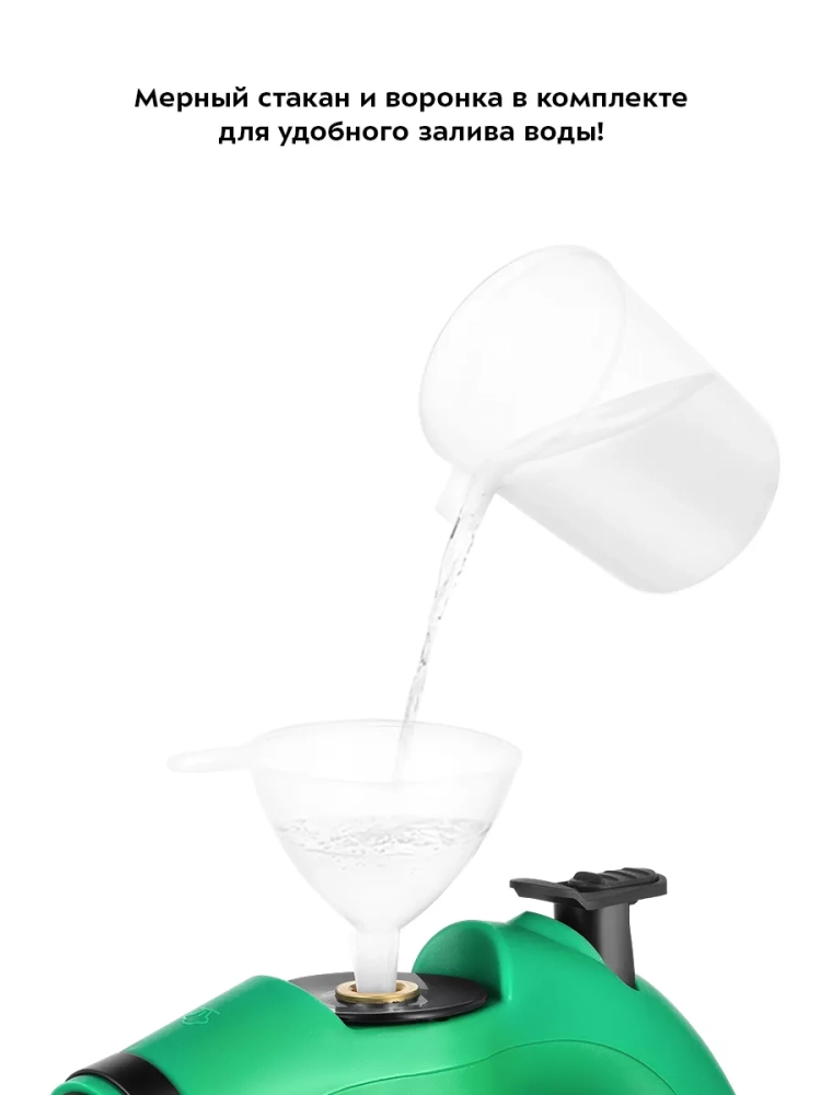 В устройство удобно наливать воду благодаря наличию воронки и мерного стакана.