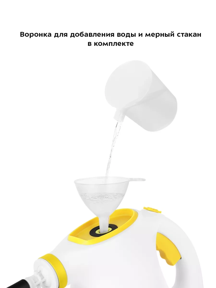 В устройство удобно наливать воду благодаря наличию воронки и мерного стакана.
