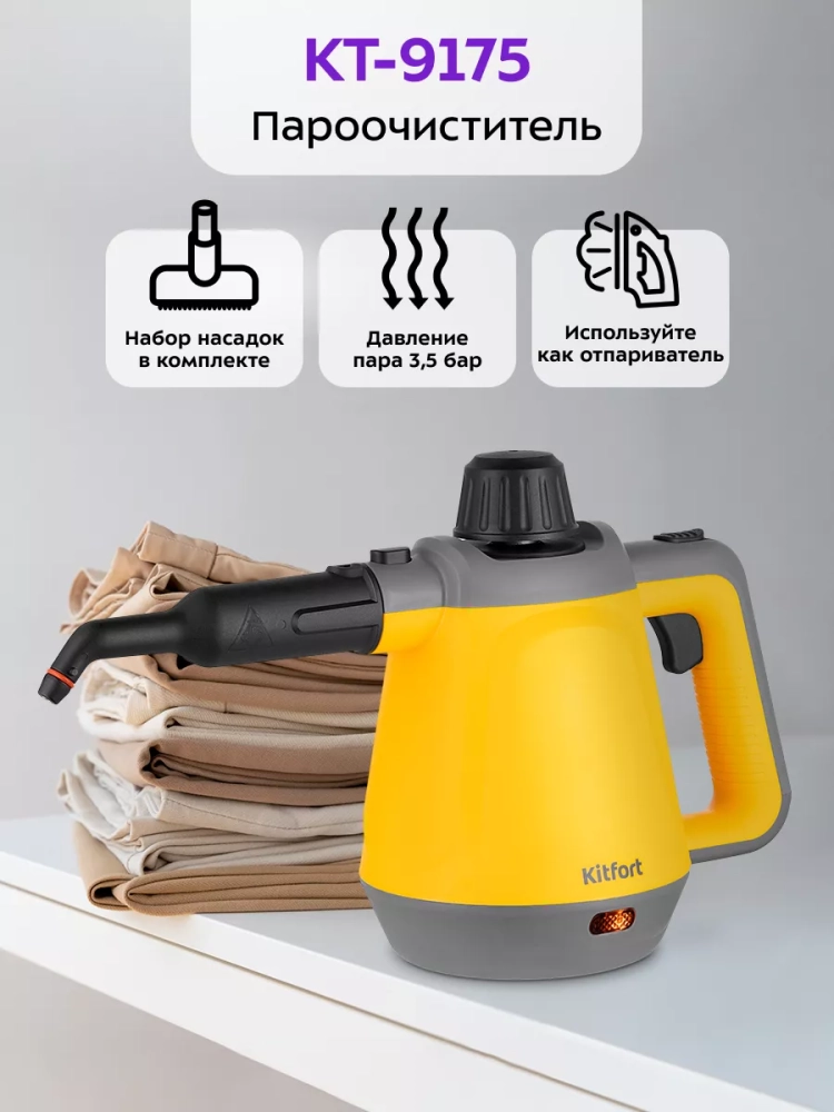Пароочиститель Kitfort КТ-9175 также подходит для очистки велосипедов и велосипедных рам, что делает его универсальным помощником в доме. Он легко справляется с задачами по очистке авто и других транспортных средств. Компактный и легкий дизайн позволяет использовать пароочиститель в любом помещении, обеспечивая удобство и комфорт в процессе уборки.