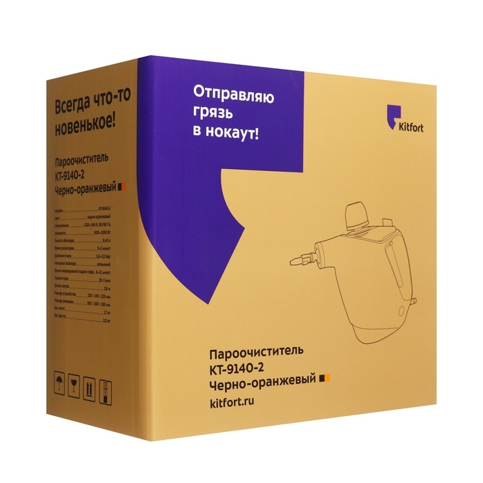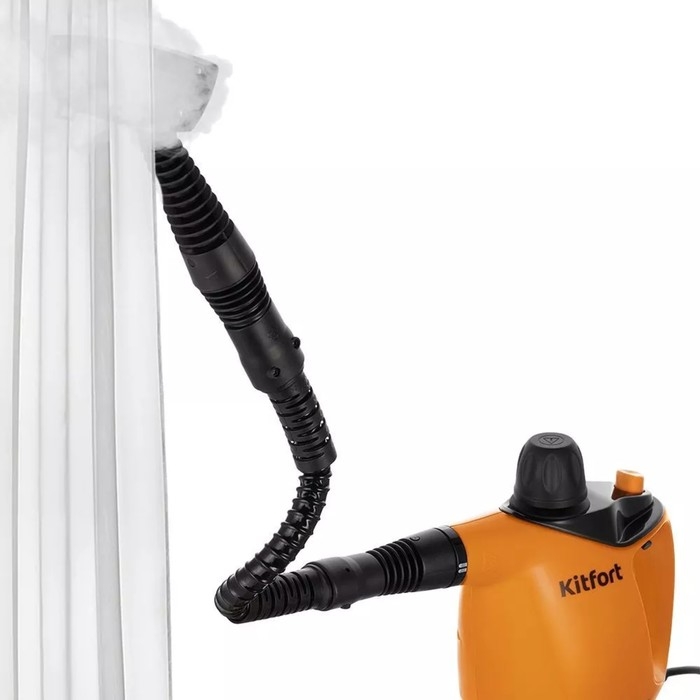 Пароочиститель Kitfort КТ-9140-2, 1050 Вт, 0.45 л, 29 г/мин, нагрев 4 мин, чёрно-оранжевый