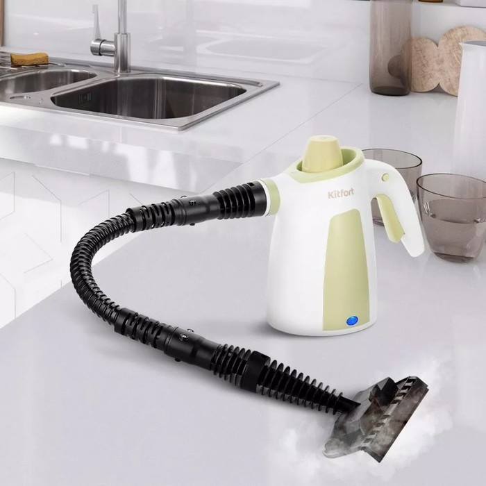 Пароочиститель Kitfort KT-9180, 1050 Вт, 0,35 л, 30 г/мин, нагрев 3 мин, бело-зелёный