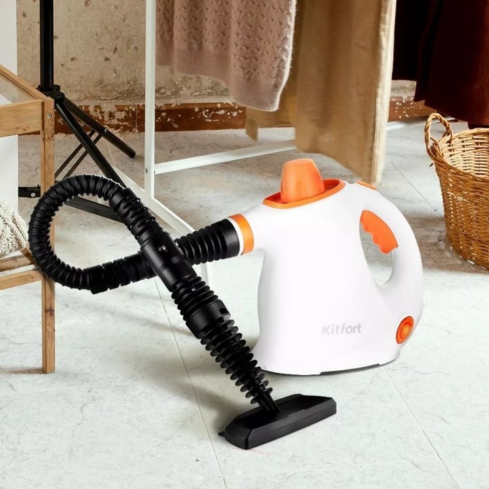 Пароочиститель Kitfort KT-9194-2, 1050 Вт, 0,35 л, 30 г/мин, нагрев 3 мин, бело-оранжевый
