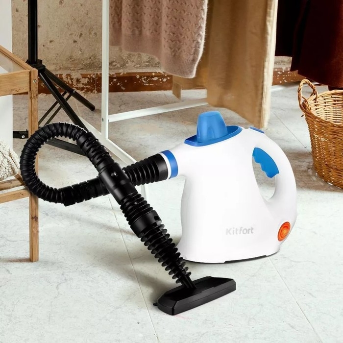 Пароочиститель Kitfort KT-9194-3, 1050 Вт, 0,35 л, 30 г/мин, нагрев 3 мин, бело-синий