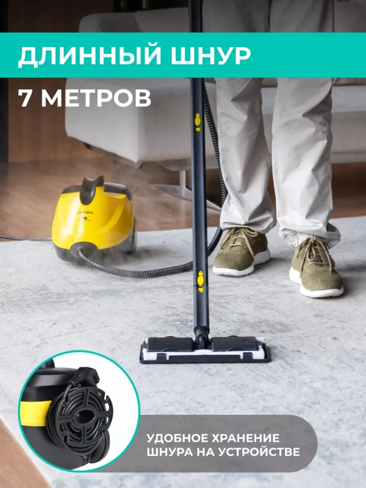 Пароочиститель Timberk T-STCF70 – легкий в использовании универсальный пароочиститель. Благодаря мощному потоку пара в 5 Бар справится со всеми видами загрязнений. Большое разнообразие насадок гарантируют чистоту даже в самых труднодоступных местах. Очистка и дезинфекция благодаря горячему пару, без использования химии. Удобная уборка самых удалённых мест благодаря длинному шнуру 7 метров с функцией сматывания и фиксации на держателе. При помощи разборной удлинительной трубки в комплекте, Timberk T-STCF70 с легкостью справится с вертикальным отпариванием одежды.