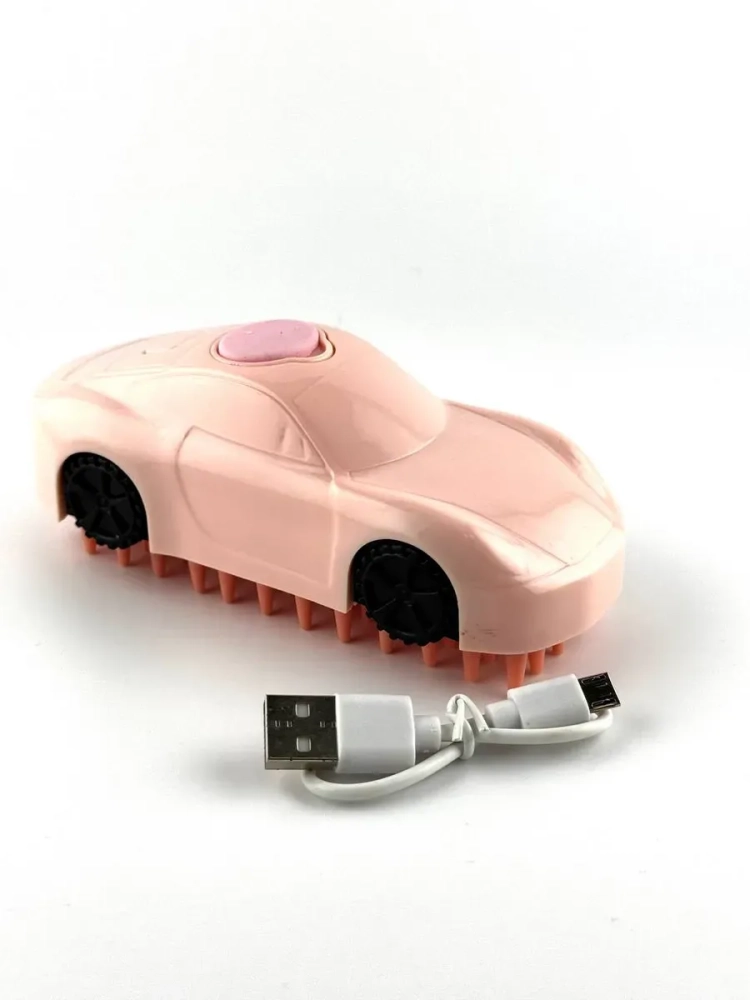 Электрическая массажная щётка в форме машины – оригинальный гаджет для ухода за кошками и собаками. Устройство помогает одновременно вычесывать шерсть, убирать выпавший пух и делать лёгкий массаж, который нравится питомцам. Работает от USB, зарядка входит в комплект.