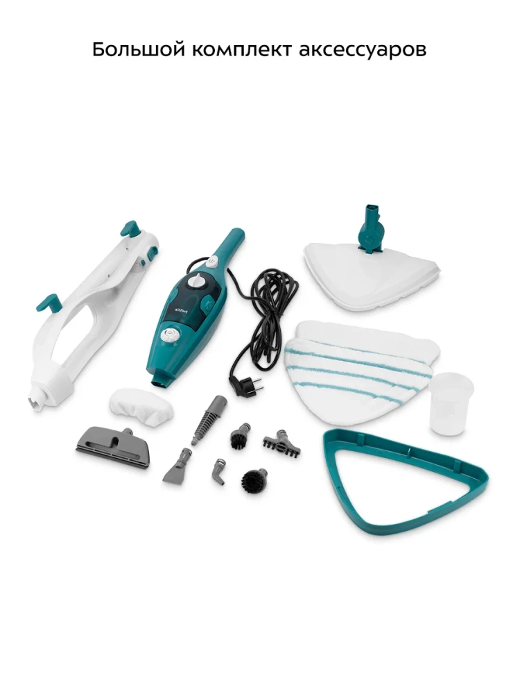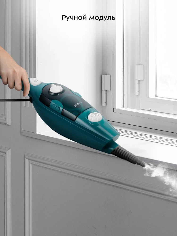 Паровая швабра Kitfort КТ-3907 — универсальное устройство, которое поможет избавиться от пыли и грязи с помощью мощной струи пара, а также продезинфицирует обрабатываемую поверхность. При помощи специальных насадок из комплекта КТ-3907 очистит напольные покрытия, раковину и плиту на кухне, зеркала, окна и плитку в ванной без каких-либо химических средств — исключительно паром.