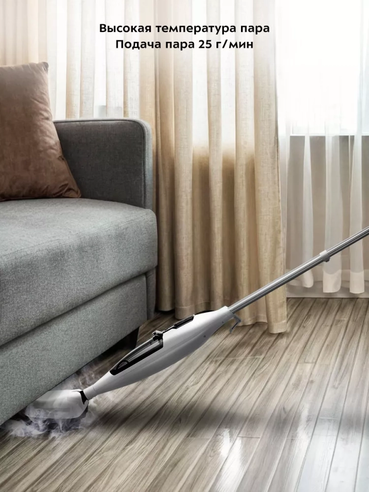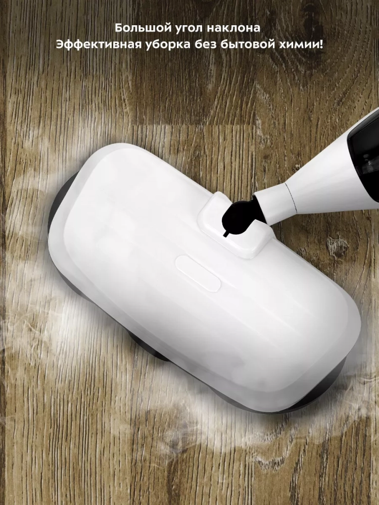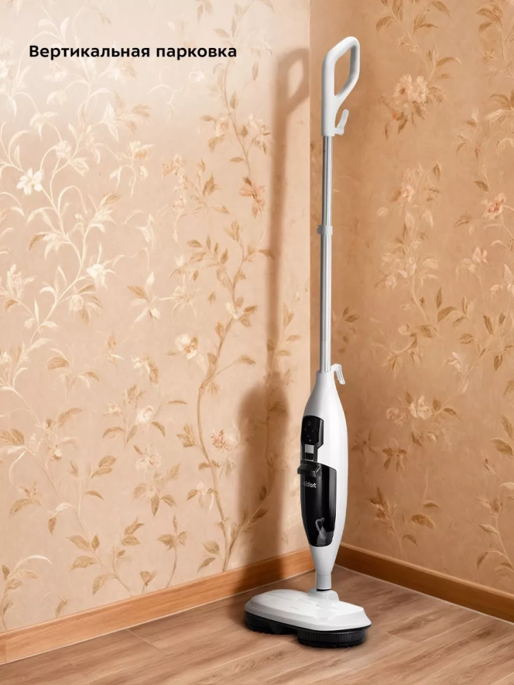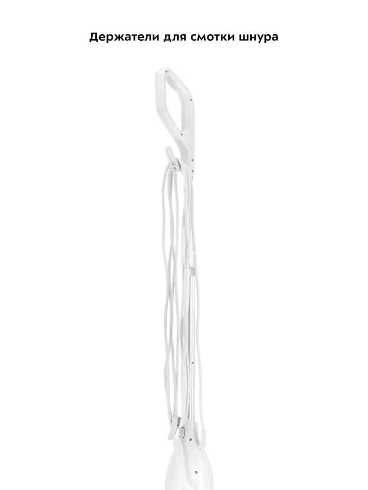 Паровая швабра обладает функцией вертикальной парковки и большим углом наклона при уборке, который поможет убрать пространство под мебелью. На удлинительной ручке предусмотрены держатели для шнура. А сама ручка телескопическая, что позволяет регулировать ее длину, как вам удобно.