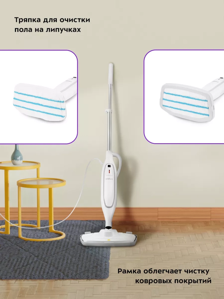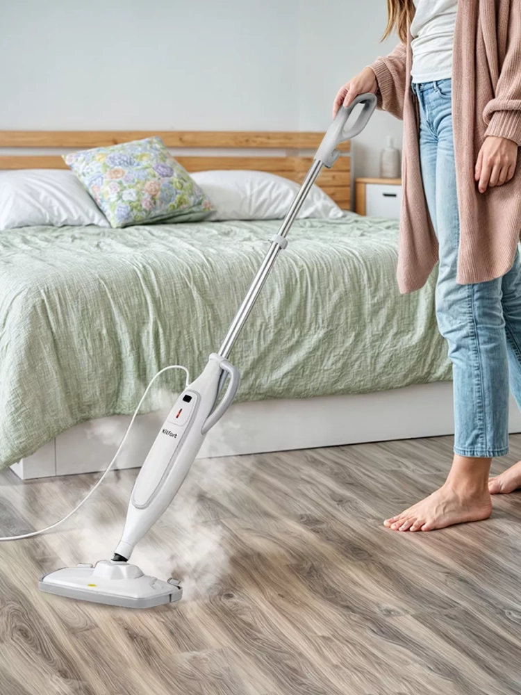 Паровая швабра КТ-3903 очень легкая и простая в использовании.