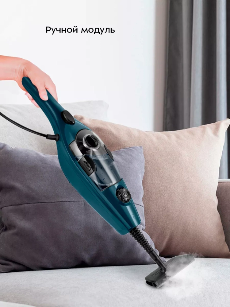 Паровая швабра обладает функцией вертикальной парковки и большим углом наклона при уборке, который поможет убрать пространство под мебелью. В устройстве предусмотрены держатели для шнура. Удлинительная трубка съемная, что обеспечивает компактное хранение.