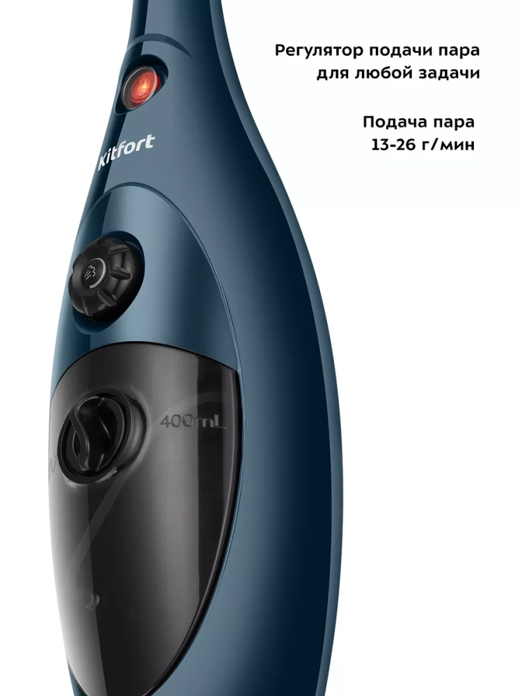 Устройство оснащено съемным резервуаром для воды емкостью 400 мл, что позволяет производить непрерывную уборку до 15–30 минут в зависимости от интенсивности выходящего пара.