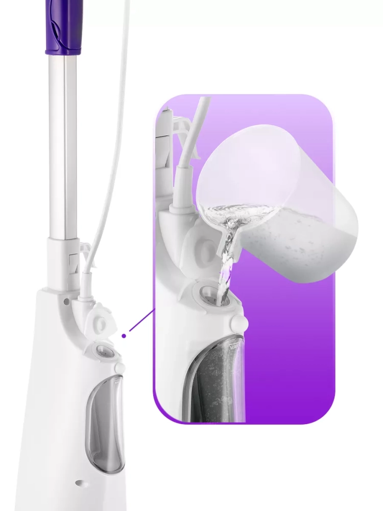 В комплекте есть рамка для ковра, которая обеспечивает легкое скольжение щетки для пола по ковру. С помощью мерного стакана из комплекта удобно заполнять резервуар для воды.