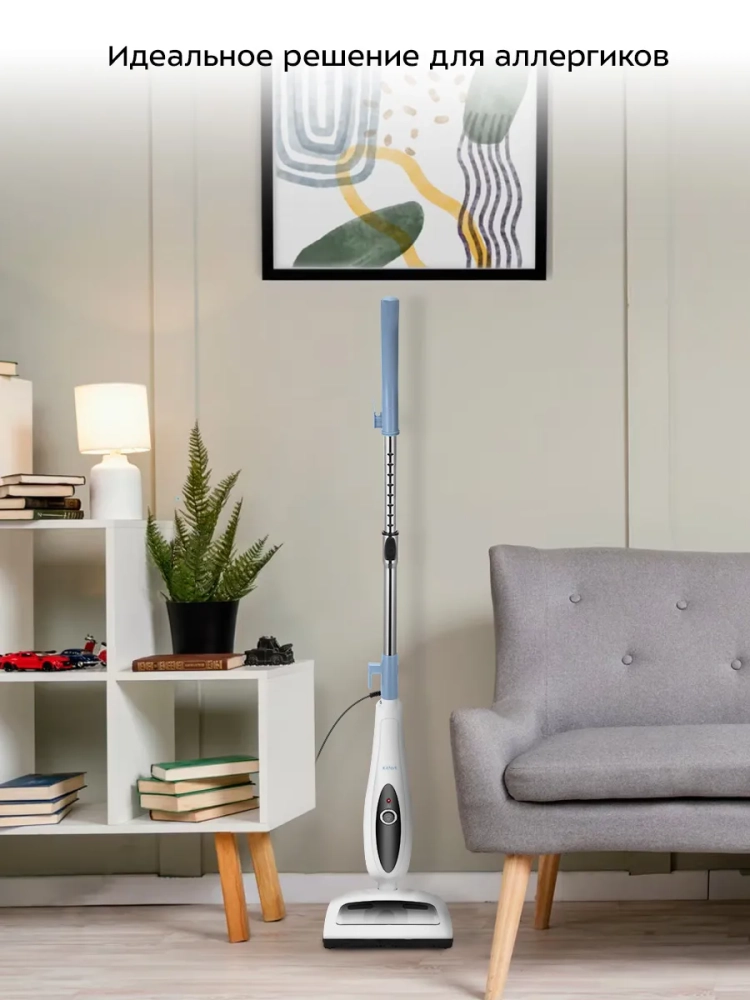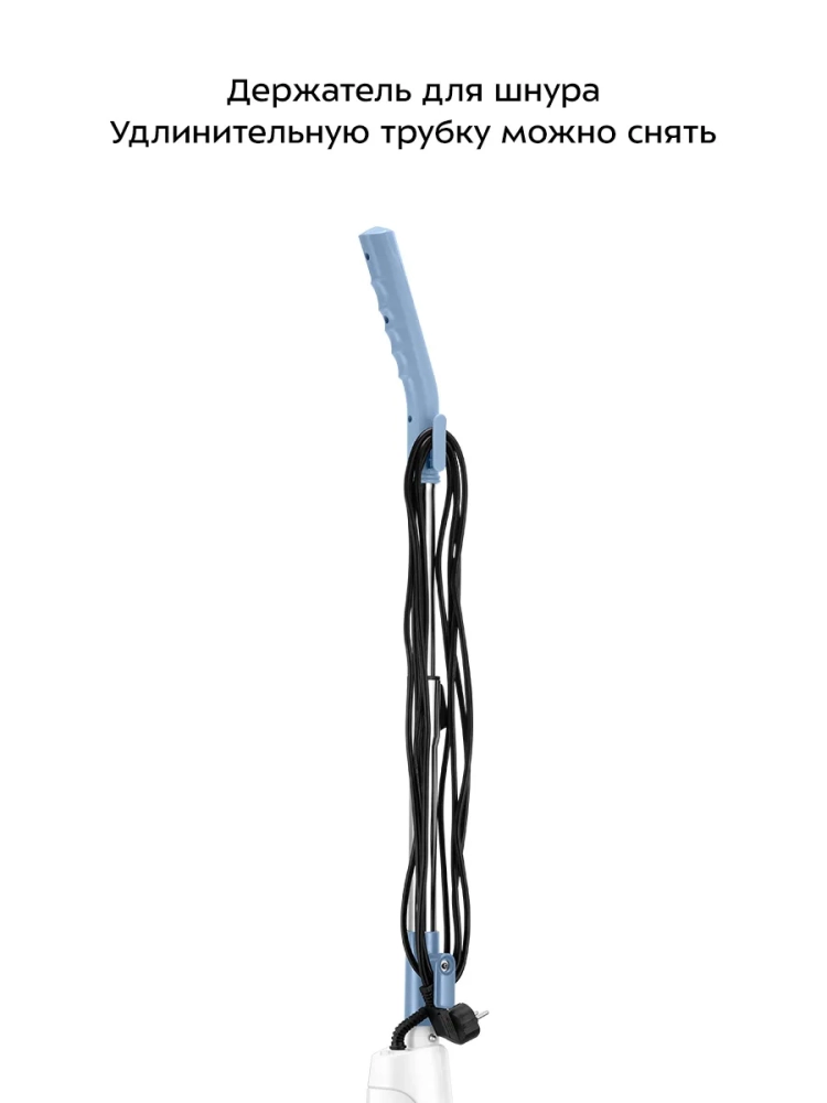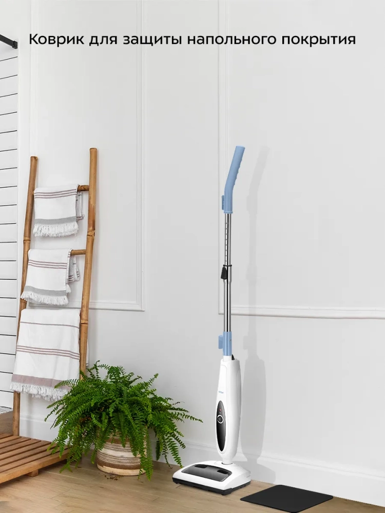 Паровая швабра обладает функцией вертикальной парковки и большим углом наклона, который поможет убрать пространство под мебелью. В комплекте есть рамка для ковра, обеспечивающая легкое скольжение напольной щетки по ковру. Телескопическая удлинительная трубка позволяет регулировать ее длину так, как вам удобно. В устройстве предусмотрены держатели для шнура. В комплекте предусмотрен коврик для защиты напольного покрытия во время нагрева устройства и перерывов в уборке.