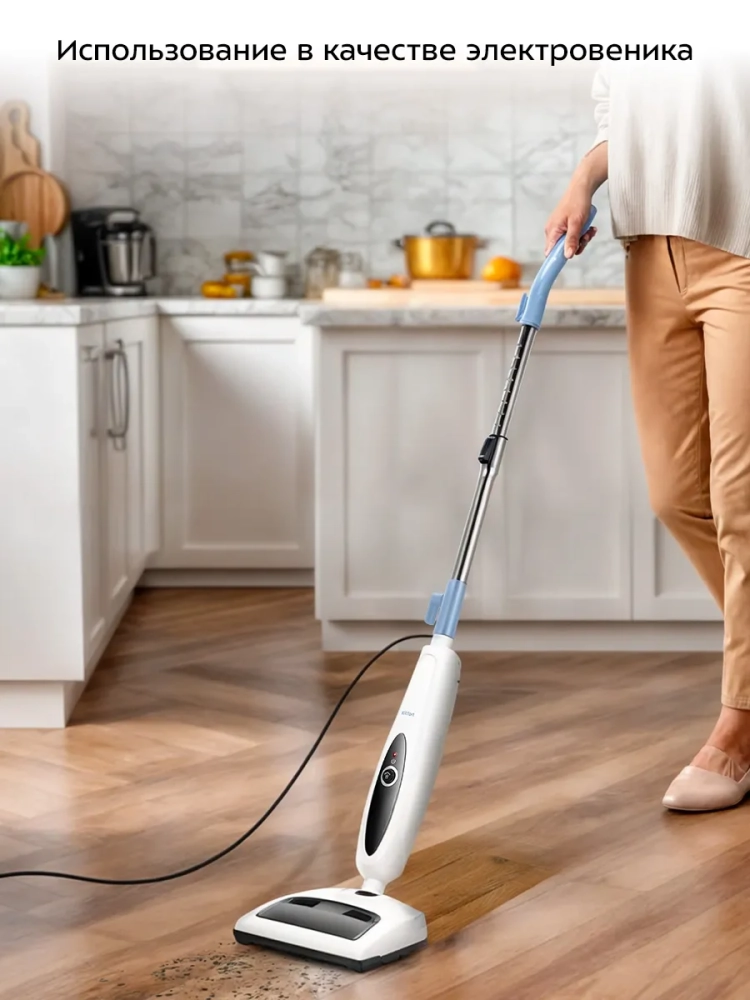 Паровая швабра с электровеником Kitfort КТ-3912 — универсальное устройство, которое совмещает себе функции паровой швабры и электровеника. Прибор поможет быстро избавиться от мусора и пыли, а также очистить и продезинфицировать напольные покрытия без каких-либо химических средств — исключительно паром.