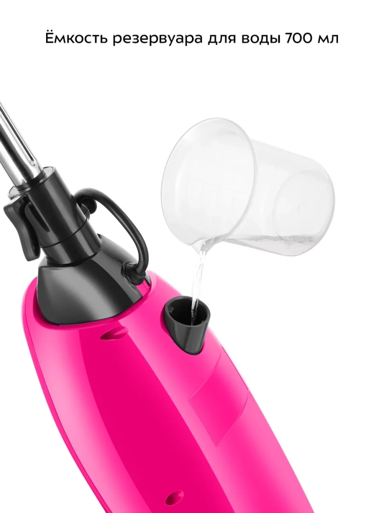 Устройство оснащено съемным резервуаром для воды емкостью 700 мл, что позволяет производить непрерывную уборку паром до 28 минут.