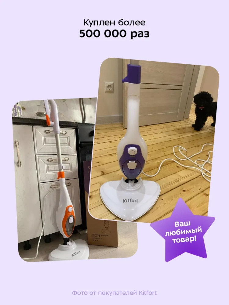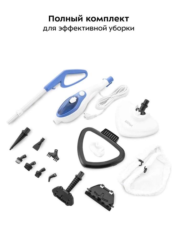 Паровая швабра с насадками КТ-1004 — это мощный, многофункциональный и универсальный инструмент для уборки дома. Эта электрическая техника сочетает в себе функции пароочистителя, стеклоочистителя и отпаривателя, что делает её незаменимой для поддержания чистоты в квартире. С помощью швабры можно эффективно мыть полы, включая деревянные и кварцвиниловые покрытия, а также очищать кафель и швы между плитками. Паровая швабра оснащена парогенератором мощностью 1500 Вт, который обеспечивает высокую температуру пара для глубокой очистки и дезинфекции поверхностей. Пар проникает вглубь загрязнений, размягчая и растворяя их, что позволяет легко удалять грязь с помощью микрофибры или щетки. В комплект входят различные насадки, включая скребок для окон и ворсовые щетки, что расширяет возможности использования устройства. Эта бытовая техника также может использоваться как ручной пароочиститель. Достаточно отсоединить удлинительную ручку и щетку для пола, чтобы превратить швабру в компактный инструмент для чистки кухонной и ванной сантехники, духовок, плит и СВЧ-печей. Пароочиститель эффективно справляется с жировыми и известковыми отложениями, обеспечивая чистоту и гигиену. Для мытья окон и зеркал предусмотрена насадка со скребком, которая позволяет быстро и без разводов очищать стеклянные поверхности. Парошвабра также может использоваться как отпариватель для одежды, занавесок и обивки мебели. Горячий пар очистителя не только разглаживает складки, но и освежает ткани, уничтожая пылевых клещей и другие микроорганизмы. Эта умная техника от Kitfort — идеальный выбор для тех, кто ценит простоту и эффективность уборки. С её помощью вы сможете поддерживать чистоту и порядок в доме без лишних усилий. Швабра с насадками КТ-1004 — это надежный помощник в борьбе с загрязнениями, который сделает уборку легкой и приятной.