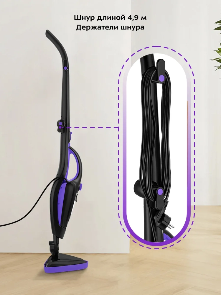 Паровая швабра Kitfort КТ-1051 — это универсальный бытовой очиститель, который станет незаменимым помощником в вашем доме. С помощью мощного парогенератора и насадок, она эффективно справляется с уборкой и мытьем различных поверхностей. Мыть пол с ней намного проще. Паровой поток размягчает загрязнения, превращая их в эмульсию, которую легко удалить тряпкой. Это делает устройство идеальным для аллергиков, так как не требует использования химических средств. Эта электрическая техника оснащена резервуаром на 380 мл для воды, что позволяет проводить непрерывную уборку от 10 до 20 минут. Пароочиститель Kitfort КТ-1051 способен очистить раковины и плиты на кухне, зеркала и плитку в ванной комнате без применения химии — только паром! Высокая температура пара способствует эффективному удалению жировых отложений и других стойких загрязнений. Конструкция гаджета "2 в 1" включает ручной модуль с насадками для более детальной очистки труднодоступных мест. Вы можете отпаривать шторы или мягкую мебель благодаря функции отпаривателя. Регулировка уровня подачи пара позволяет настроить интенсивность работы устройства под ваши нужды. Парошвабра обладает функцией вертикальной парковки и большим углом наклона щетки для пола на шаровом шарнире, что обеспечивает маневренность при уборке под мебелью. В комплекте предусмотрена рамка для ковра — это облегчает скольжение по ворсистым покрытиям. Электрошвабра Kitfort КТ-1051 — это мощный инструмент для поддержания чистоты вашего дома без лишних усилий!