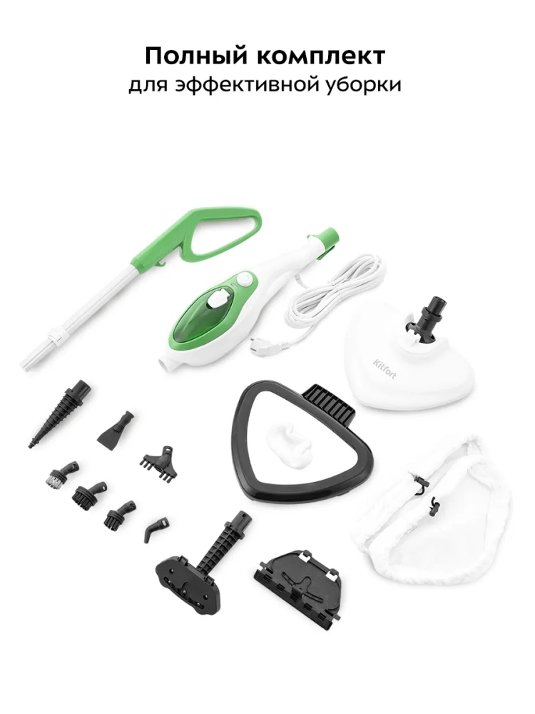 Паровая швабра Kitfort КТ-1004 - это больше, чем просто швабра. Она не только поможет вымыть пол, но также имеет насадки для мойки стекла и отпаривания тканей. Паровой шваброй можно производить чистку паром различных поверхностей и предметов. Принцип действия паровой швабры Kitfort KT-1004 основан на воздействии горячего пара на загрязнения. Пар проникает внутрь загрязнения, размягчая и растворяя его, а затем с помощью тряпки или щетки частички грязи смываются. Высокая температура пара весьма способствует процессу очистки. Возможности и функции включают в себя пароочиститель, дезинфектор, стеклоочиститель, отпариватель.