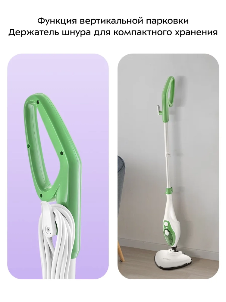 Если отсоединить удлинительную ручку и щетку для пола, то швабра превращается в ручной пароочиститель или отпариватель. Им можно чистить паром различные поверхности и предметы: кафель и швы между плитками, сантехнику для кухни и ванны, духовки, плиты, СВЧ печи, жировые и известковые отложения. Для усиления механического воздействия в комплекте идут ворсовые щетки и скребок.